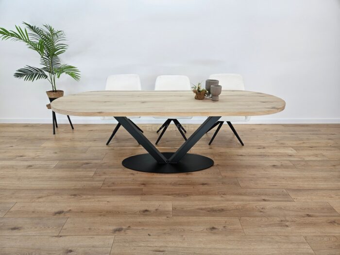 Eiken boomstam tafel met Diamant-Matrix Onderstel