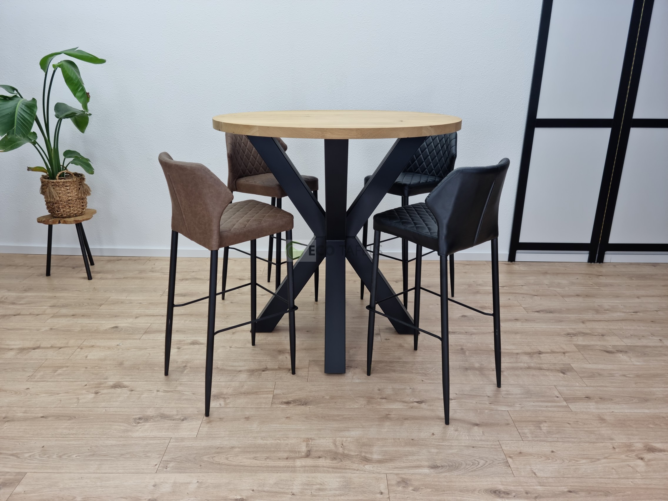 Foto: Prachtige glad geschuurd ronde eiken bartafel met rechte rand, gemaakt van het mooiste eikenhout en volledig massief! Bladdikte: 4cm