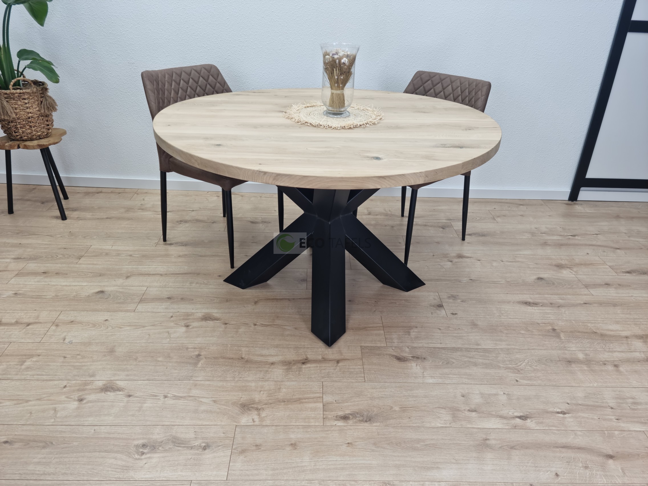 Eiken ronde tafel Vlinder-Onderstel